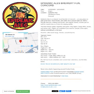 Purchase a $79 Ad in the SPOTLIGHT newsletter (Mails every Wed, +7k subscribers, 70% OPEN RATE), and we’ll set up your event listing FREE! Trusted by restaurants, breweries, nonprofits, and event organizers countywide for more than 20 years. Schedule Ad Today.Questions? Call or text Frank MacCallister (925) 325-0934